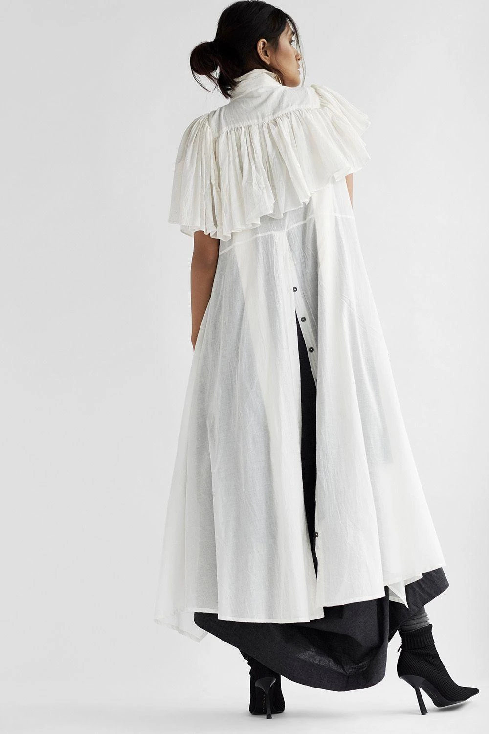 Sport an easy, feminine look with this high low frill shirt with back button plackets. Cut in organic cotton, this shirt is a must have for the summer season.