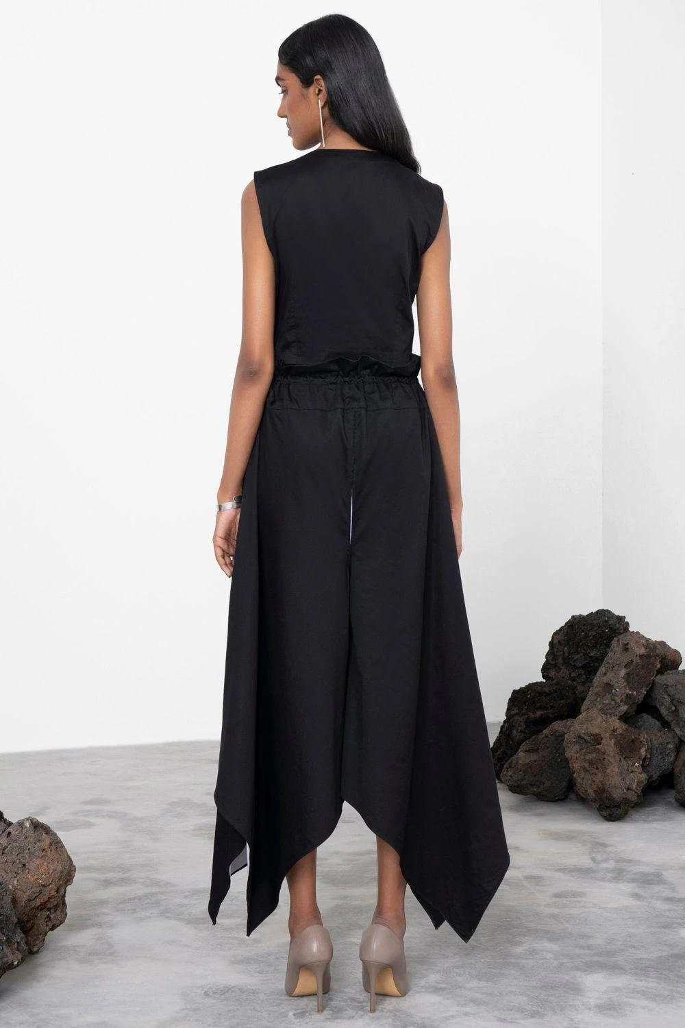 These anti-fit style pants with slits on either sides is perfect for you to lounge or run your errands in. It closes on the side with a concealed zip and has pockets on both sides.
