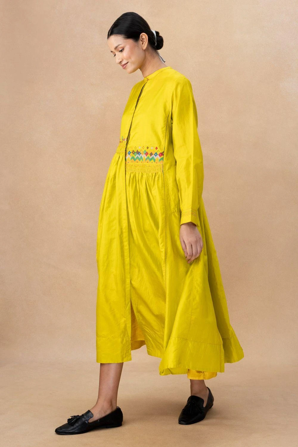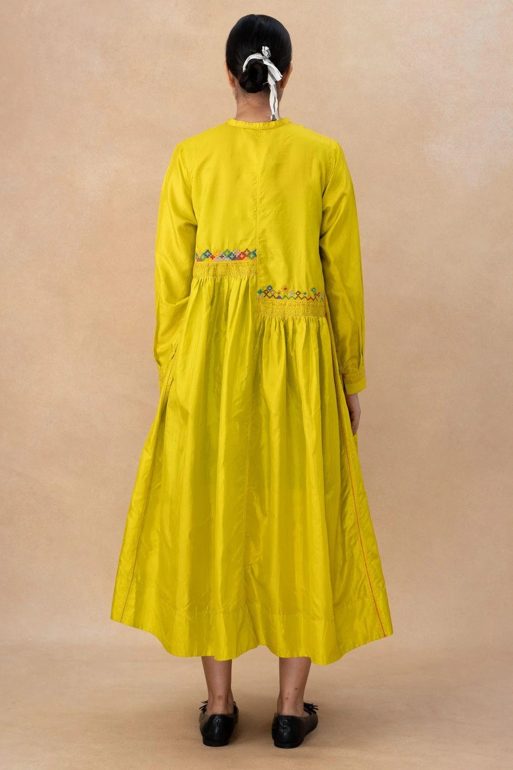 Step into elegance with this handwoven dress, a masterpiece of craftsmanship, adorned with exquisite embellishments. Created for the spring-summer season this dress has handwoven textures that aim to evoke a sense of joy, playfulness & vitality.