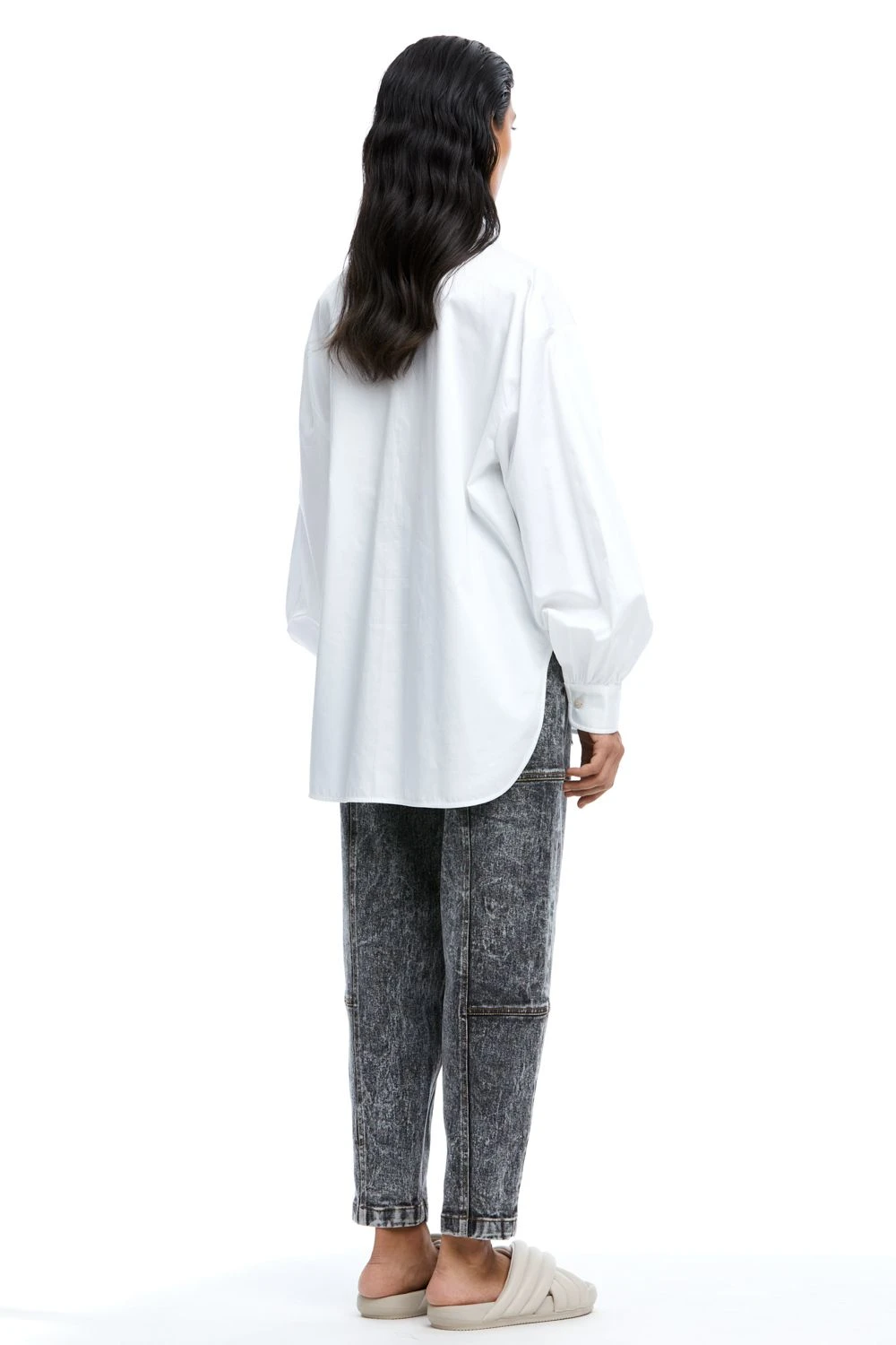 Experience timeless elegance with these Black Barrel-Fit Denim Pants. The epitome of classic style, these pants offer a versatile addition to your wardrobe for an effortlessly chic look.