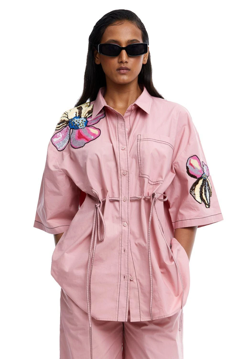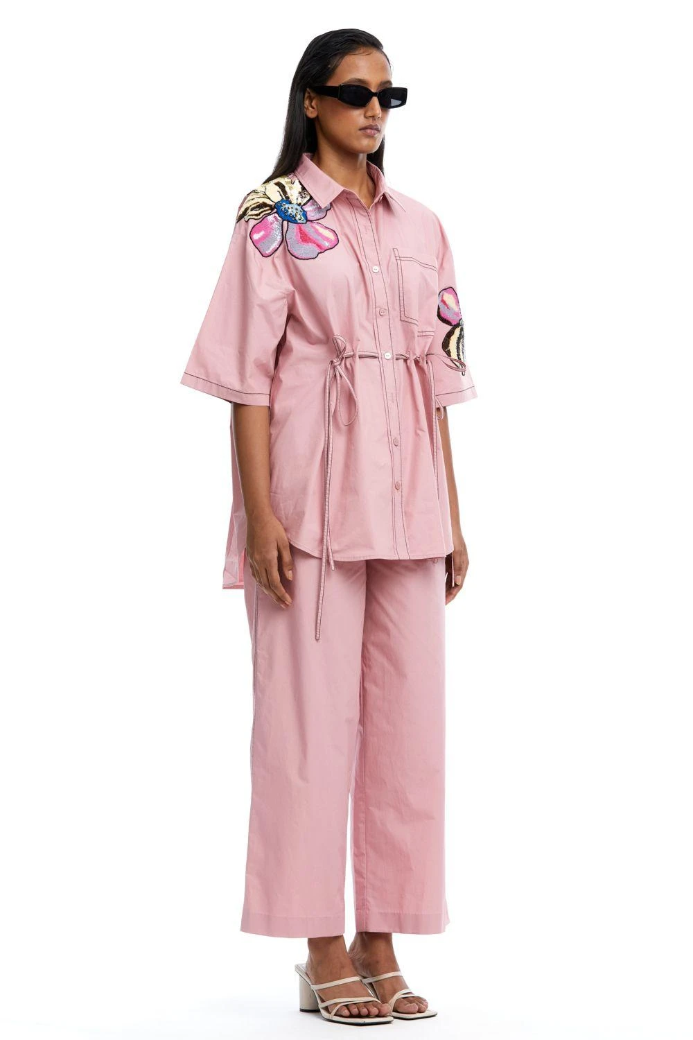 Elevate your style with this pink Hand-Embellished Shirt. Crafted with precision, this shirt merges elegance and artistry, reflecting a sophisticated charm that’s perfect for any occasion.