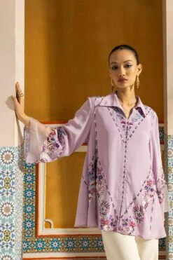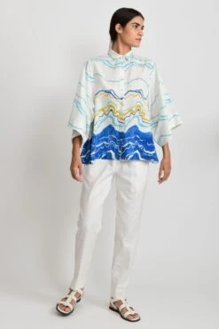 Look sartorially savvy with this white shirt. Crafted in cotton, this collared buttoned down shirt features hand embellished details. Pair this shirt with blue denims to complete the set.