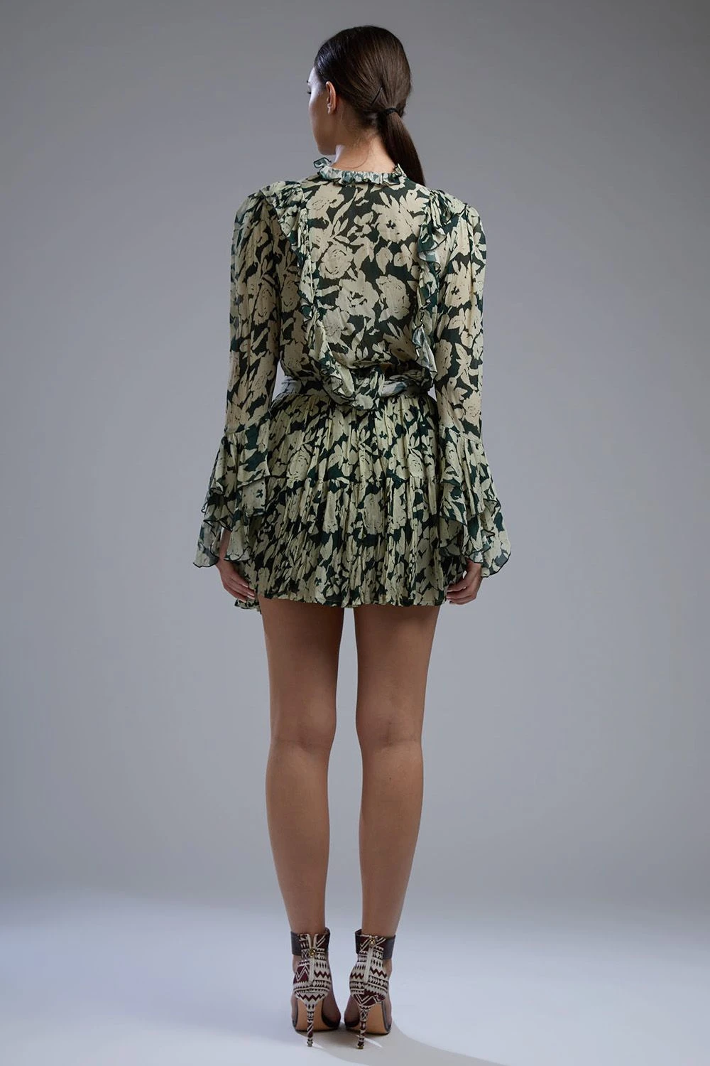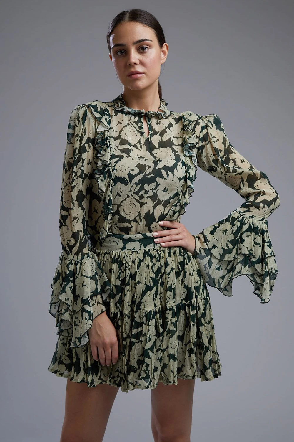 KoAi Chiffon Dark Green & Beige Floral Skirt