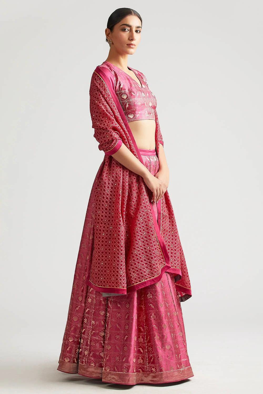 Material/Fabric : Lehenga set : silk brocade, dupatta: Silk organza