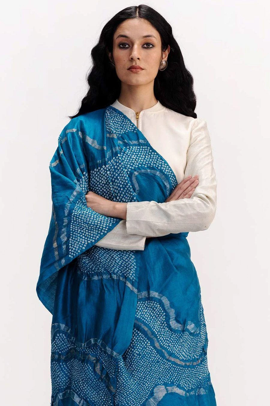 From your work desk to the brunch table & from lounging at home to catching flights, you can always count on this blouse. Crafted in handwoven Bengal silk, this bomber blouse features metallic sleeves.