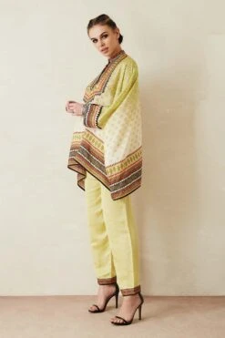 Perfectly blending traditional artistry with modern sensibilities, this gara embroidered shirt is a true masterpiece that will elevate any wardrobe. Style it with a pair of white narrow pants to complete the set.