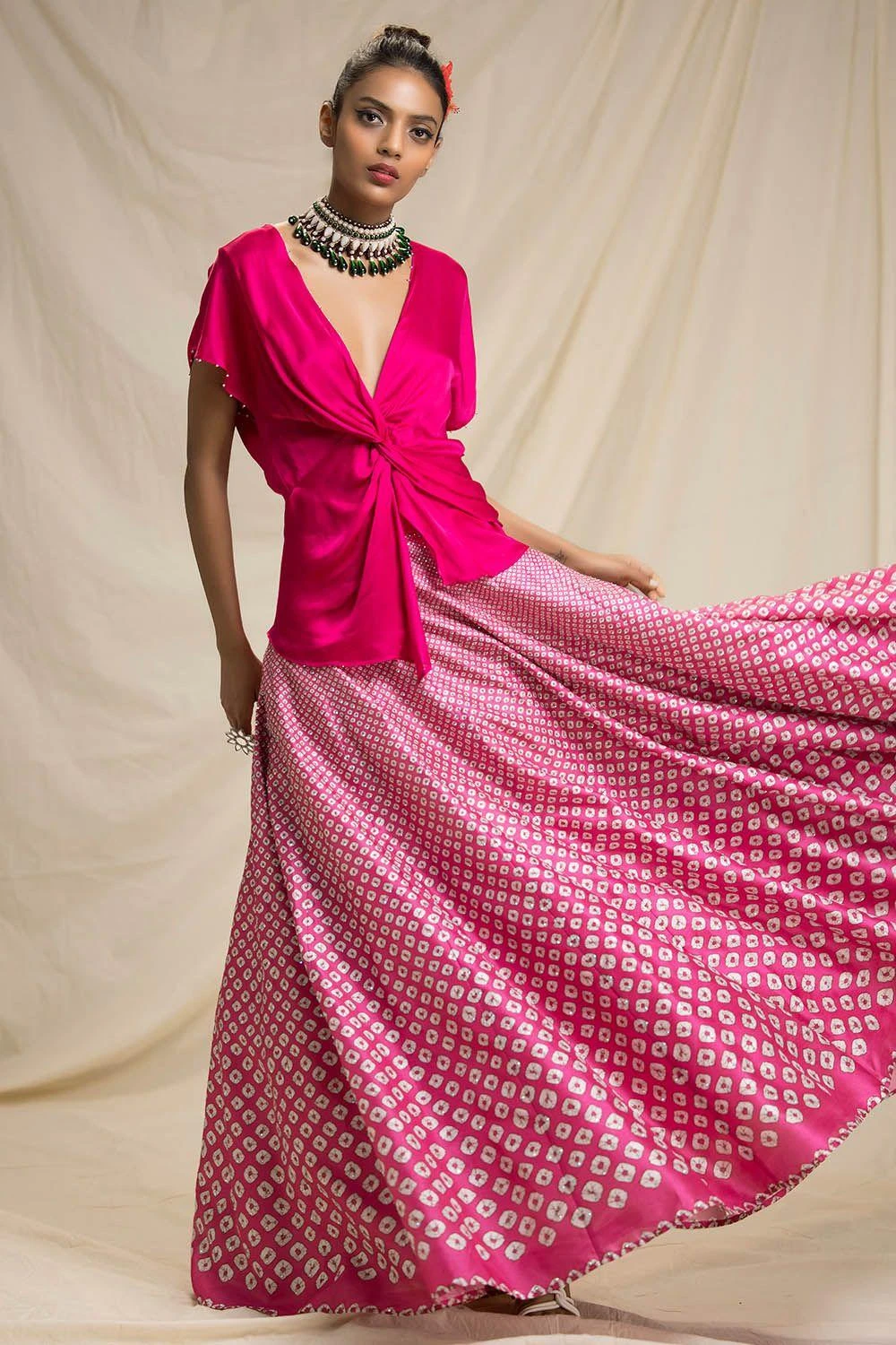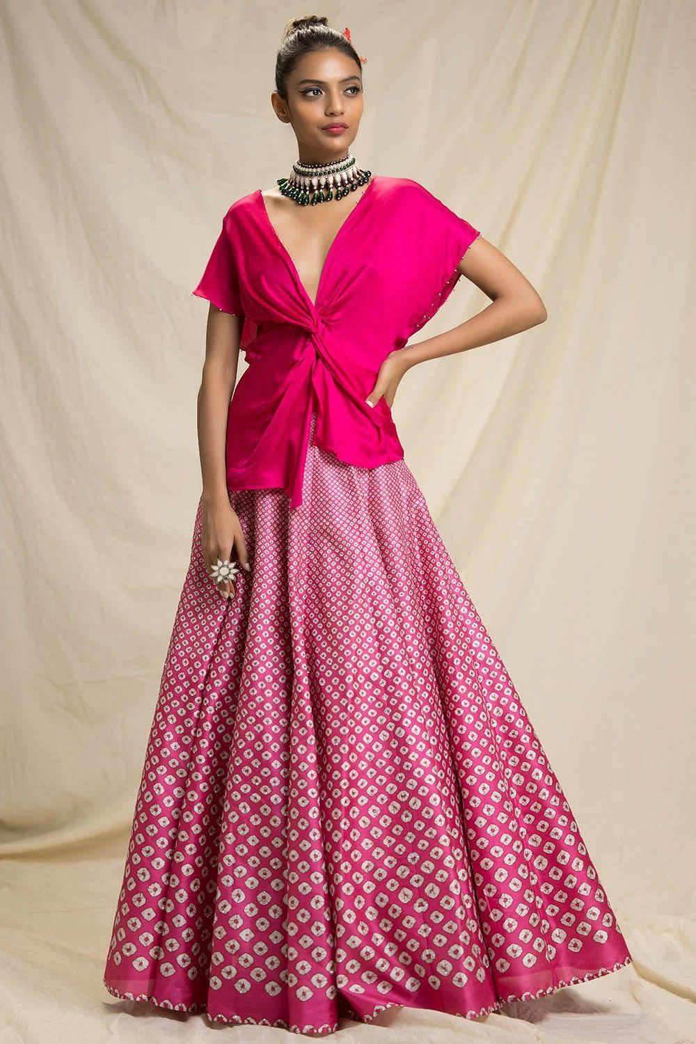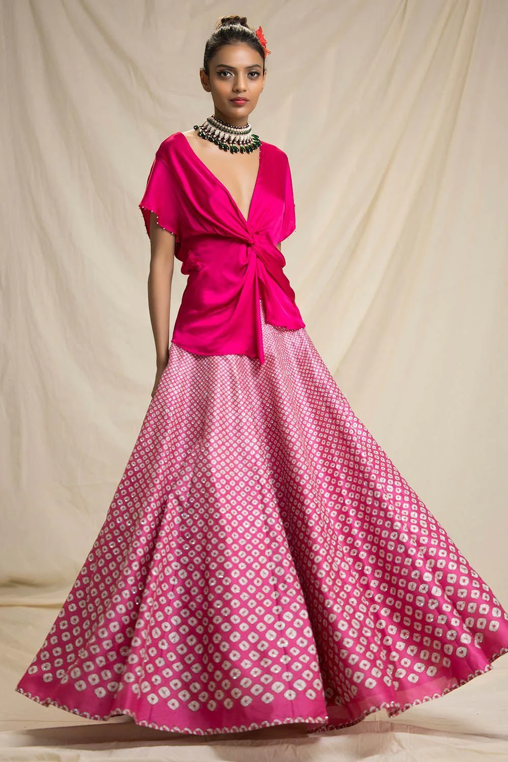 Rajdeep Ranawat Bandhni Printed Lehenga With Knotted Blouse
