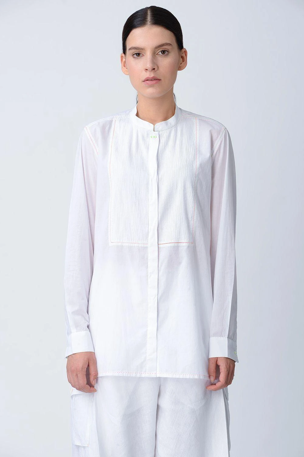 This classic white aravali cotton shirt with pintucks should be a wardrobe staple. So easy to wear, you can dress it up for an evening out or keep it casual for the day.