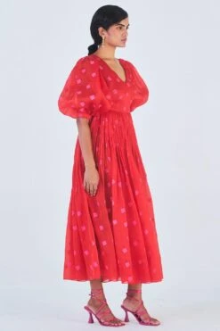 The spring season calls for light & airy pieces that are both stylish & comfortable. This white printed sundress is cut in poplin with a button down placket which helps to adjust the length. It is cinched with a matching fabric belt.